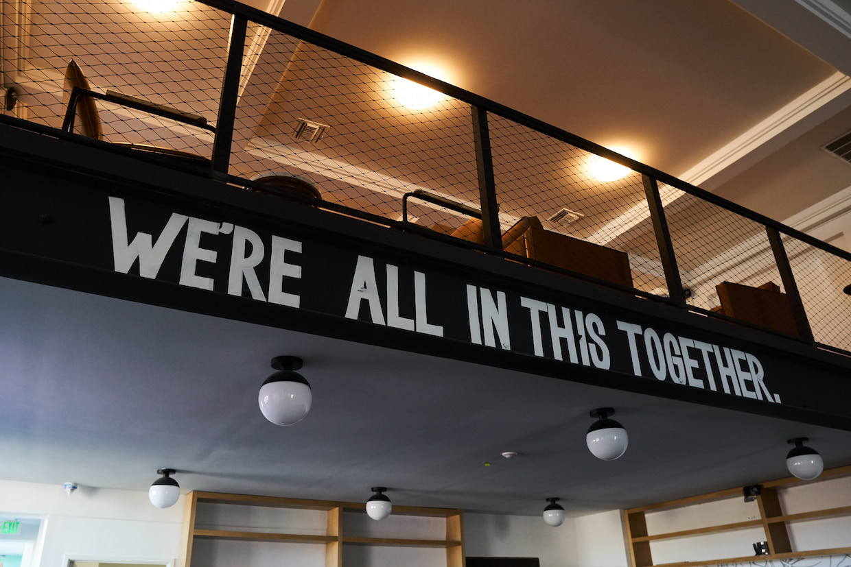 The “We’re All In This Together” message painted at the new Hilltop Coffee + Kitchen location in Inglewood. Photo by Justin Jamerson, courtesy of Hilltop.
