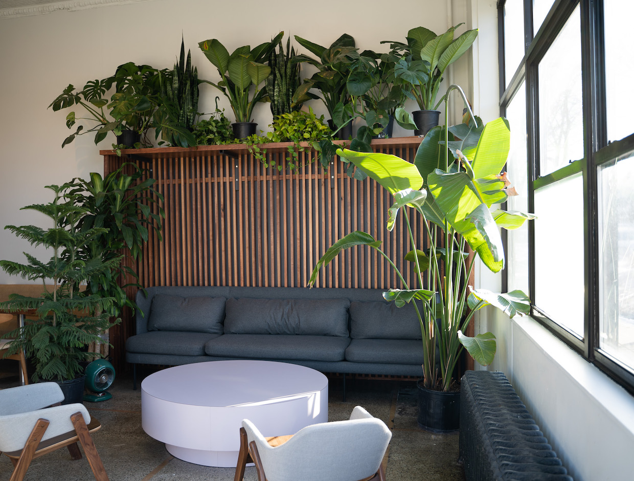 Potted plants throughout the space are also intended to remind guests of the lush green regions from which the company’s coffees hail.