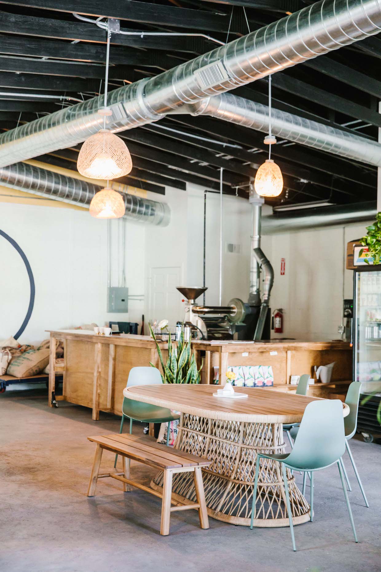 Inside the new Helm Coffee Roasters roastery and coffee shop in Indianapolis. All images by Rebecca Jacobson, courtesy of Helm Coffee Roasters.