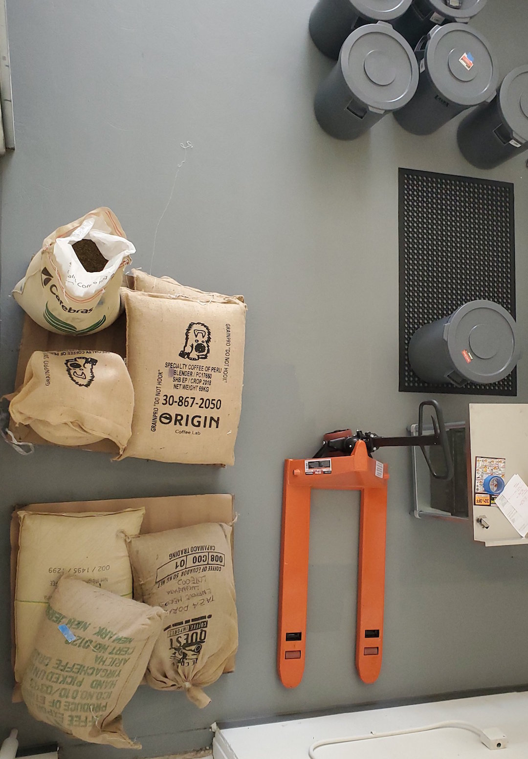The new facility features a 2,000-square-foot main floor with two mezzanine areas that rise above it, allowing for plenty of room for production to spread out around the company’s mid-90’s Probat L5 roaster that the company said might soon be joined by a four barrel Joper sample roaster.