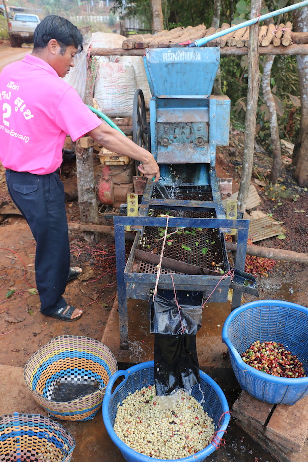 Lanna Coffee Company coordinates with the Integrated Tribal Development Program (ITDP), a Thailand-based nonprofit that has helped over 25 hill tribe villages to begin operating and benefitting from coffee farms that are owned entirely by the villagers. The village-owned farms produce about 250 million tons annually, from which Lanna gets first crack at sampling, cupping and selecting the best for purchase at generous prices, usually higher than the Fair Trade base.