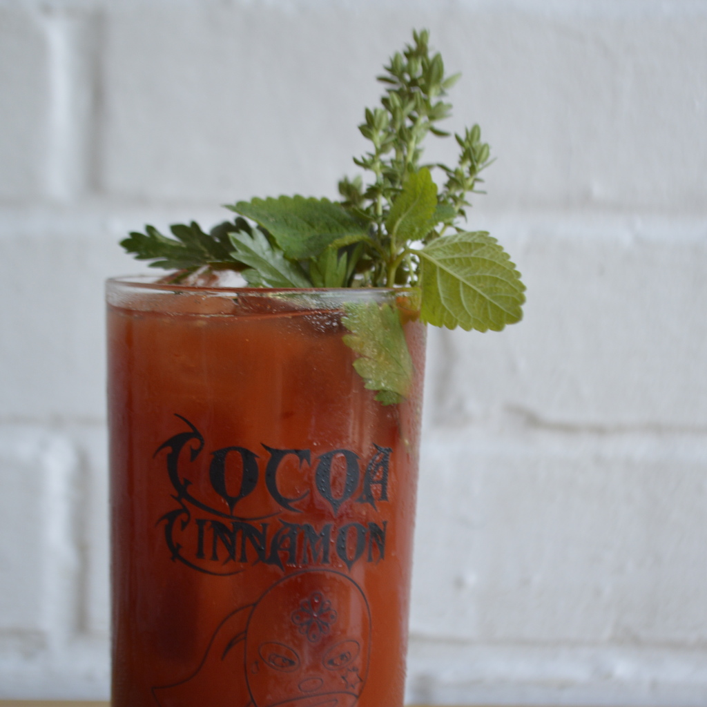 - CocoaCinnamon homemade bloody mary mix (tomato juice, malabar black pepper, ginger root, cumin)