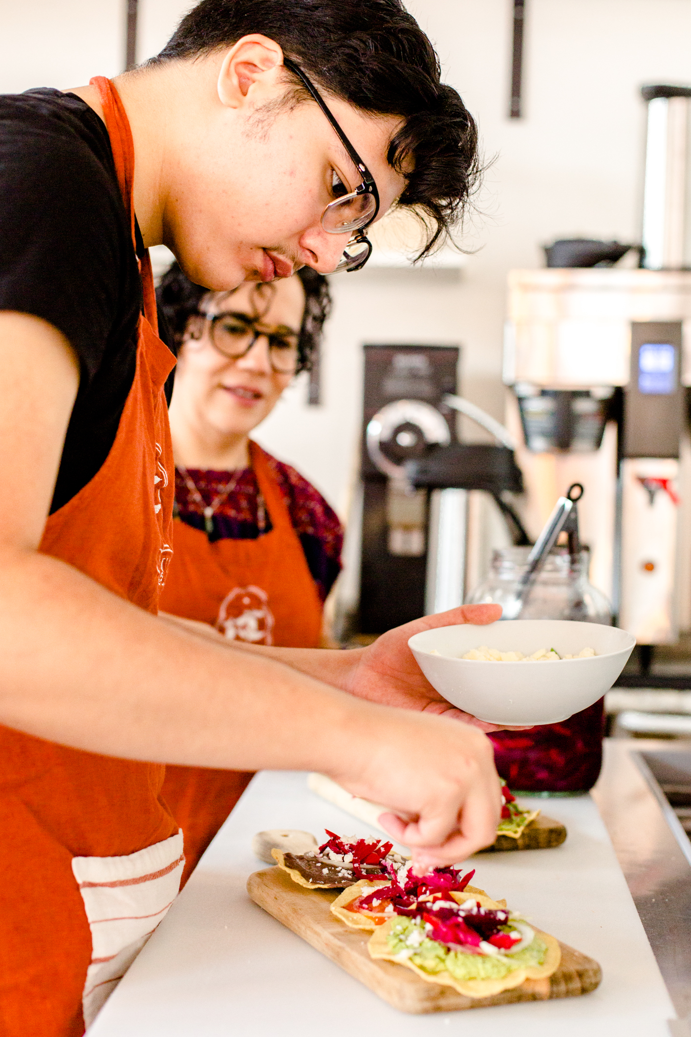 The shop’s many potted plants and herbs that recall the lush vegetation of Guatemala are nourished by daylight that floods through the corner building’s windows.