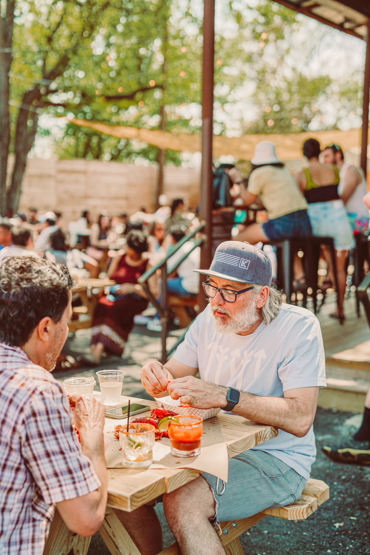 Located in Austin’s Cherrywood neighborhood, the cafe has a walk-up window offering service directly to guests in an outdoor area that is roughly twice as big as the 1,200-square-foot cafe interior.