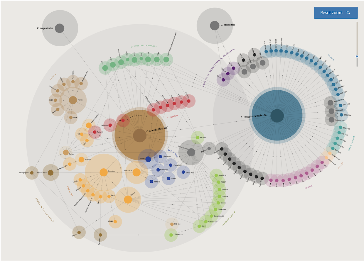 Organizations contributing data and research for the catalog included India’s Central Coffee Research Institute (CCRI), the Indonesian Coffee and Cocoa Research Institute (ICCRI), the Brazilian Agricultural Research Corporation (EMBRAPA), the National Coffee Research Institute of Uganda (NaCORI-Uganda), Vietnam’s Western Highlands Agroforestry Science Institute (WASI), and the global Nestlé Research Center.